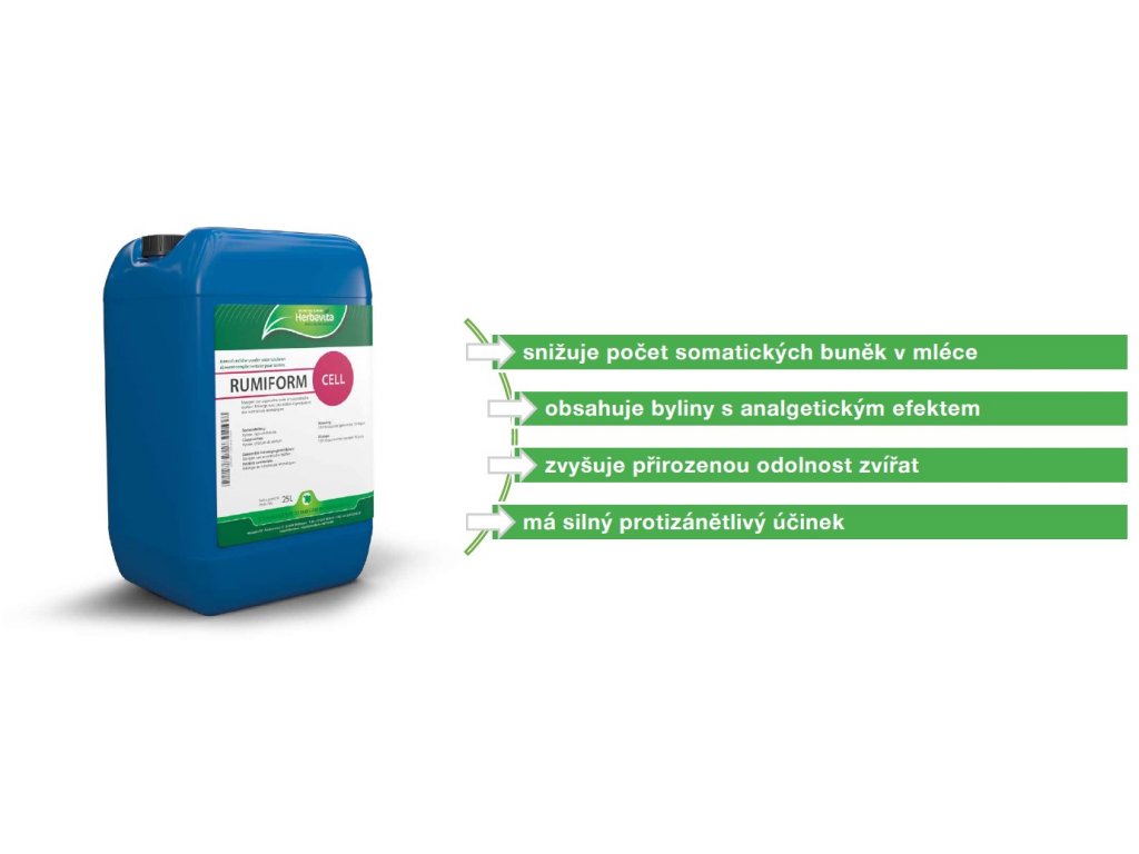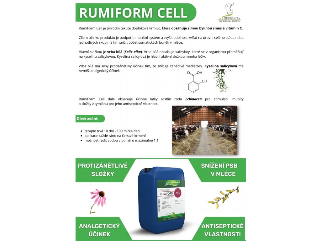RumiForm Cell je přírodní tekuté doplňkové krmivo, které obsahuje směs účinných rostlinných složek a vitamínů C.