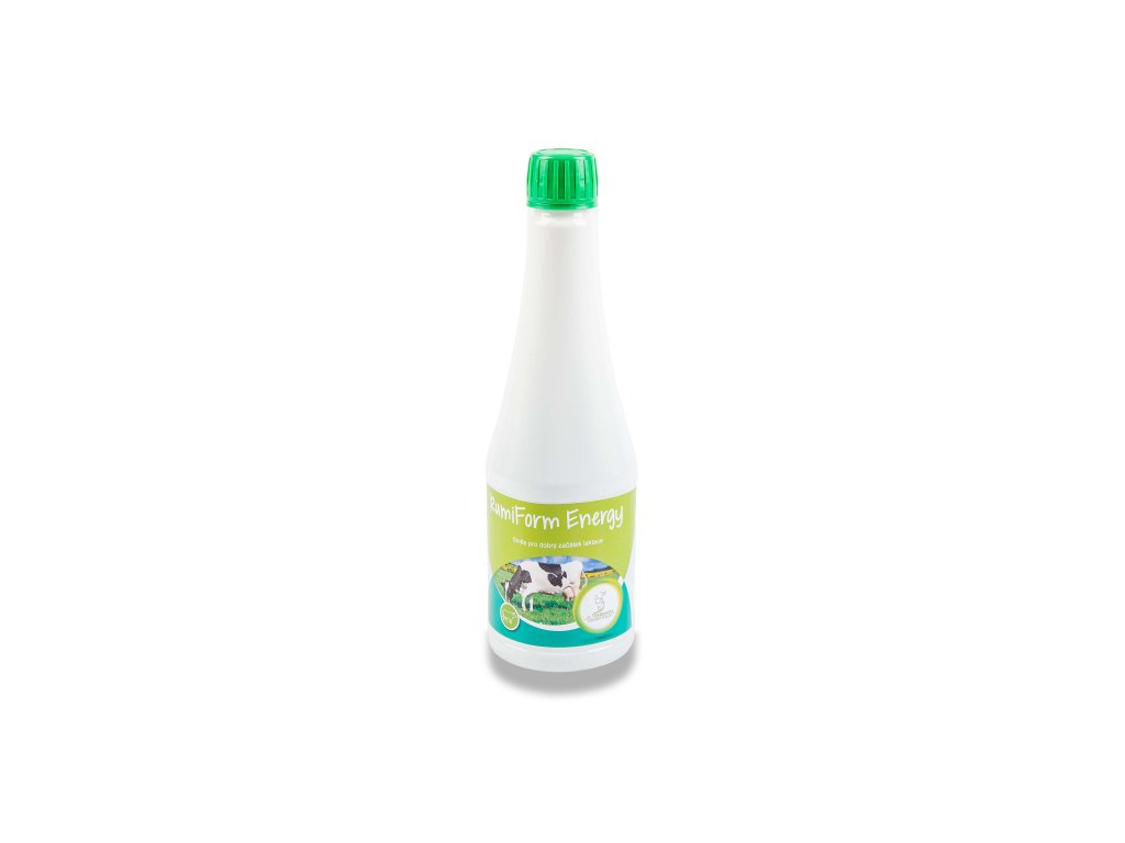 Rumiform Energy podporuje příjem krmiva a trávení, což napomáhá udržení rovnovážné energetické bilance a zamezuje tvorbě ketóz.